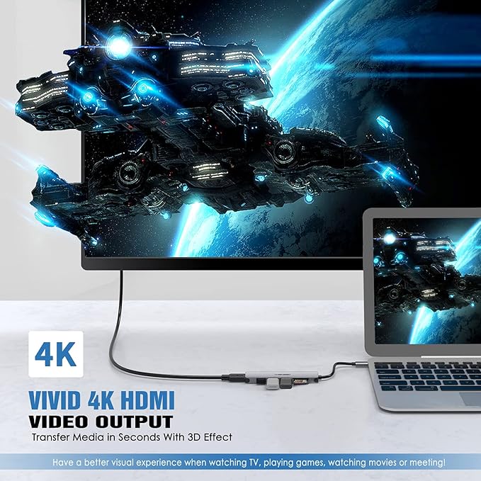 - 4K HDMI Video Adapter for Stunning Pleasure - Extends your screen with the HDMI port and directly stream 4K UHD or Full HD 1080p video to HDTV, monitors, or projectors. ThanBao USB C Hub brings you vivid 3D effect video sync. Perfect to stream a full HD movie on your HDTV; extend a 3D video game on your monitors or show your PPT through the projectors for office meetings.