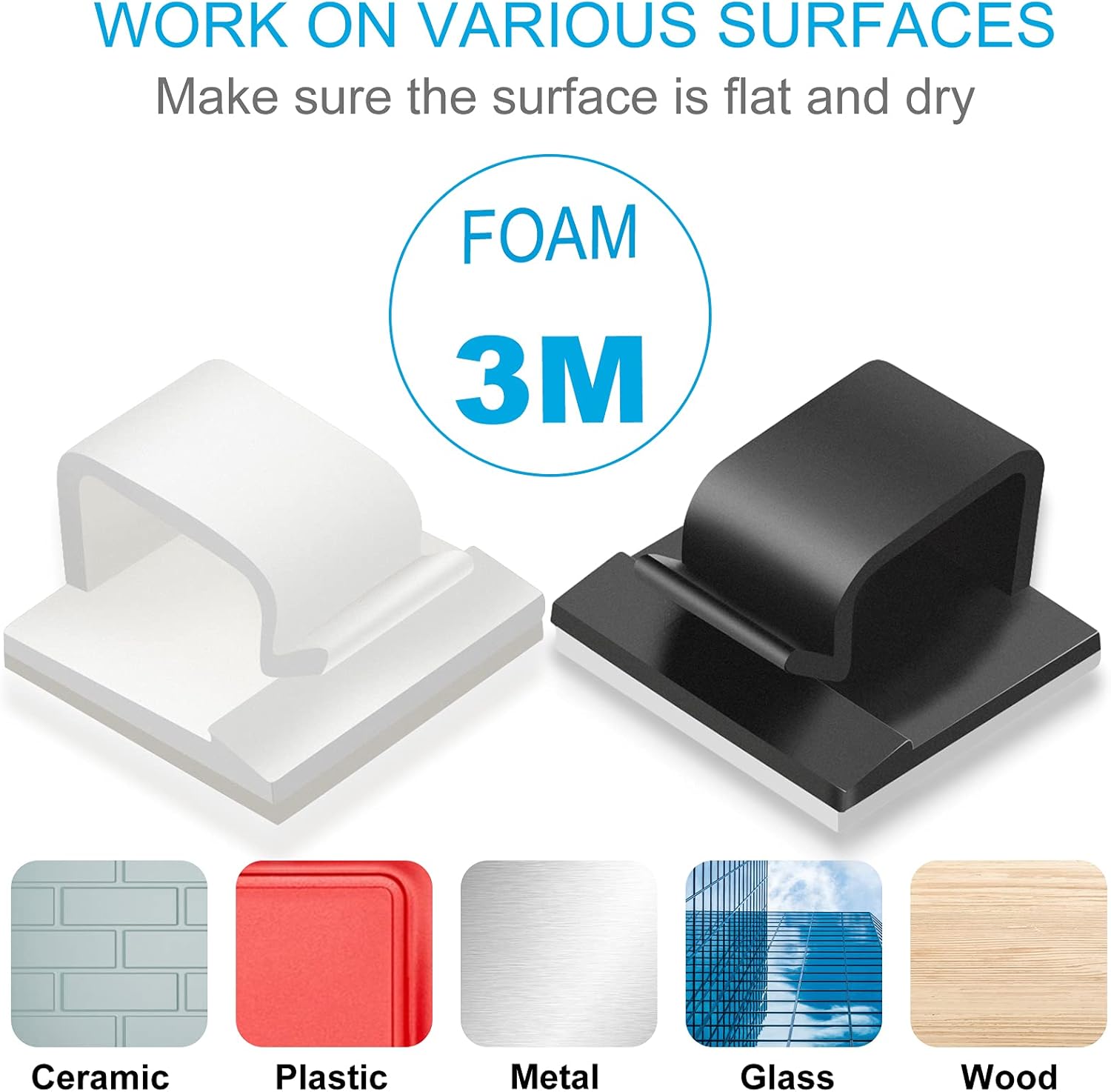 - 【Note before Use】 Make sure to clean the mounting surface with alcohol pads before you use the cable management clips, stick them on and press firmly for 30 seconds, and use them after 24 hours for maximum adhesion.