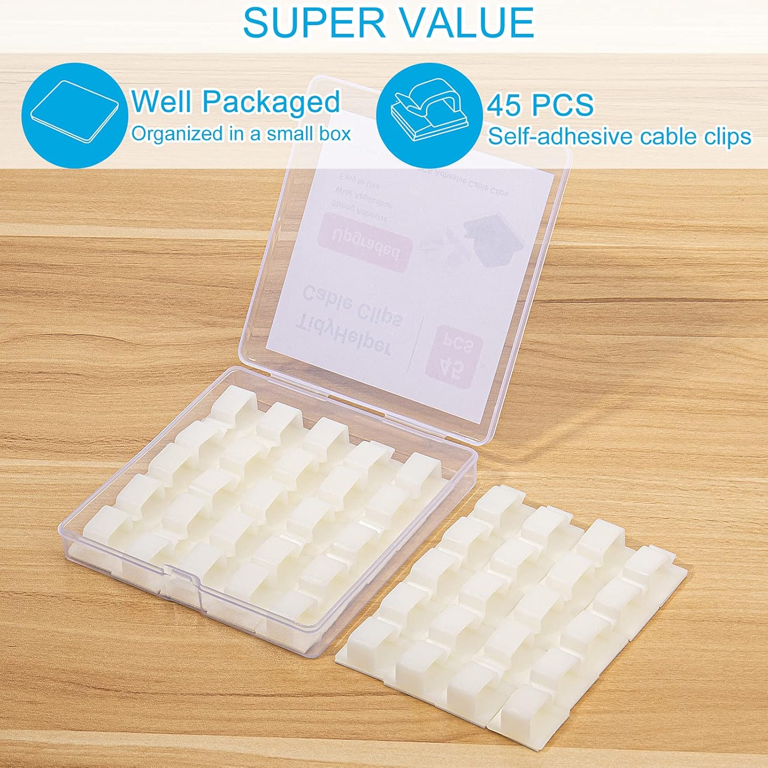 - 【What You Get】Our adhesive cable clips package comes with 45 pcs white cable clips, which are nicely organized in a cute box. Help you keep the jungle cables organized and in place.