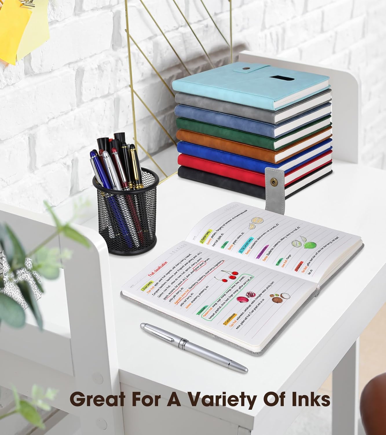 - 【PREMIUM THICK PAPER】:5.9 X 8.4 inch journal notebook with 200 pages 100 gsm lined paper, thicker 30% than normal, this grey notebook is designed to avoid feathering and the paper is ink-proof, suit for most pens, but the wettest pen inks. Archival-quality pages made from acid-free paper-resists damage from light and air, the cream paper is easy on eyes.Let your creation more freedom on the wide ruled journal to write in.