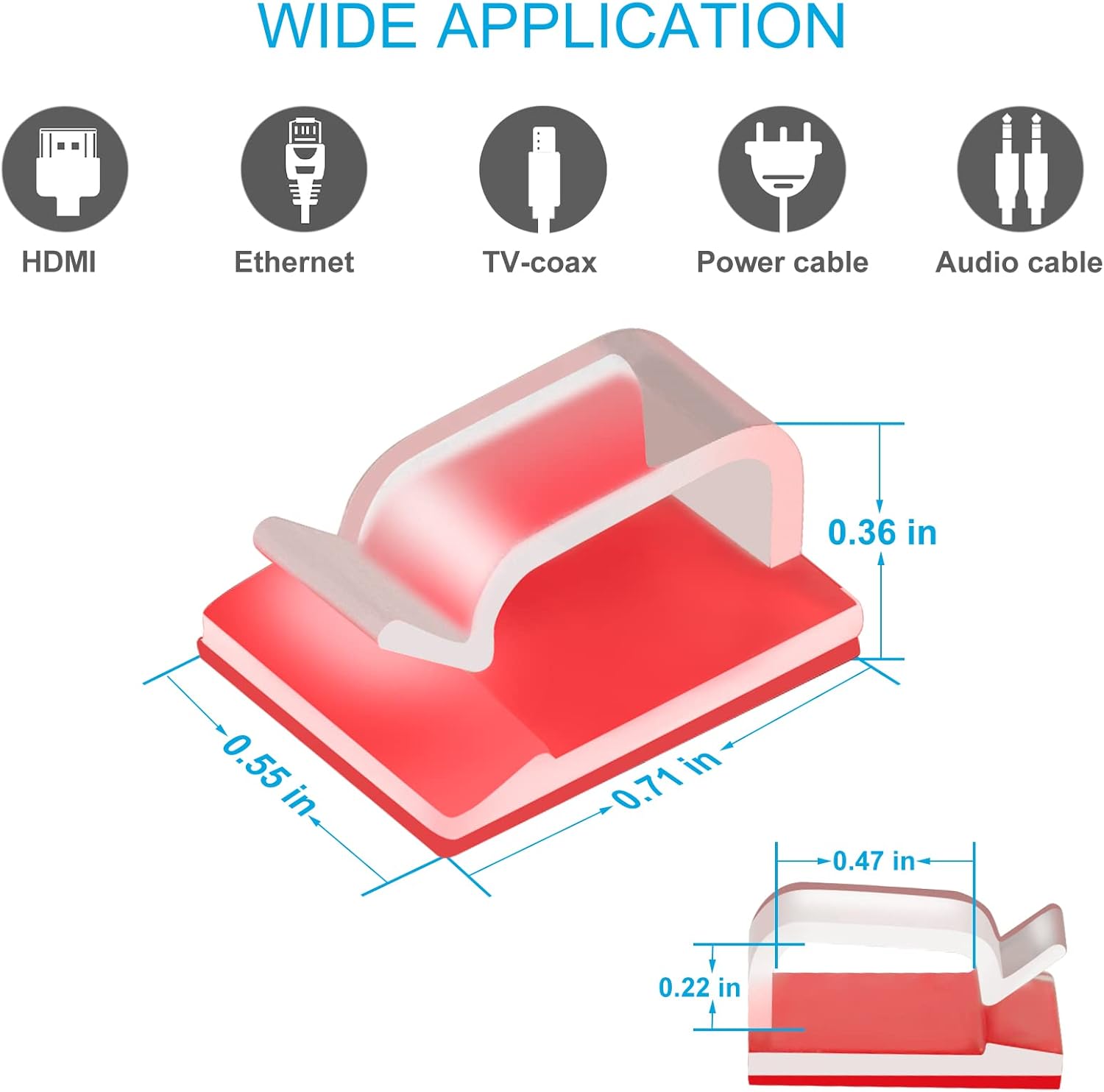 - 【Wide application】Size: 0.55 in*0.71 in*0.36 in, those cable management clips are suitable for wire diameter within 0.26 inch: Outdoor lights, USB cords, cell phone chargers, ethernet cable, electric wires. They can easily hold 2 thin cable at the same time. Work perfectly on wall, glass, desk, metal surface.