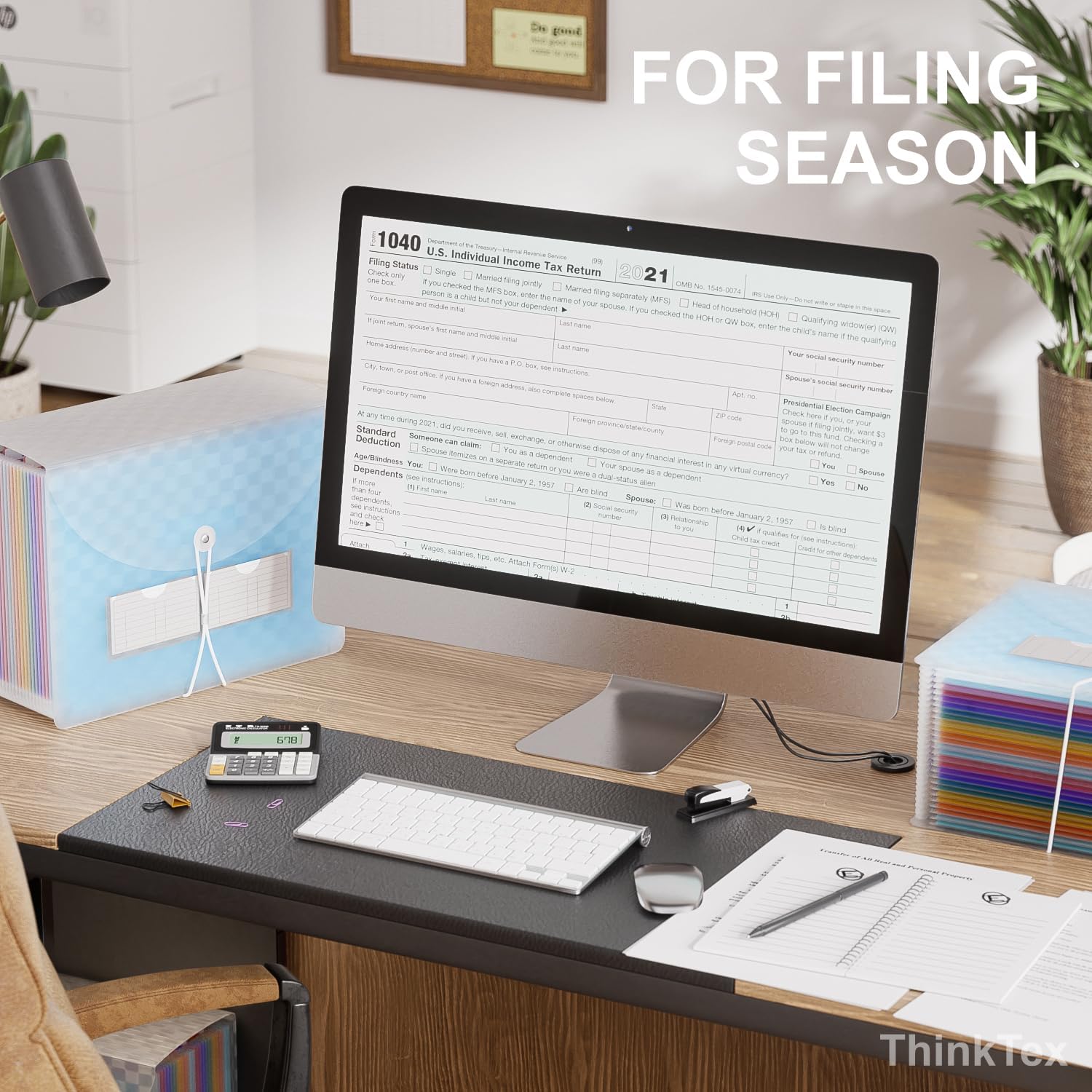 - MONTHLY BILLS ORGANIZER - ThinkTex 26 pockets accordion file organizer, top and bottom both expandable, A-Z multi-colored tabs, for letter/A4 size