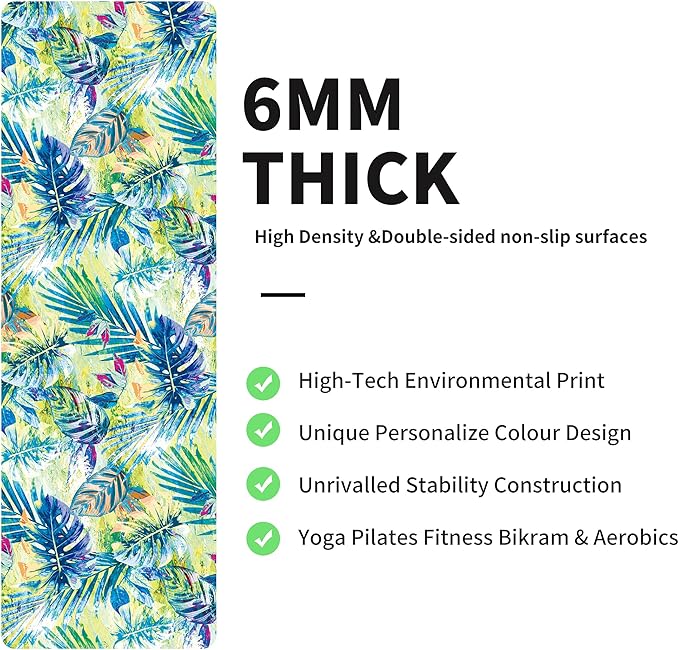 nuveti Yoga Mat Print Extra Thick TPE Non Slip Fitness Exercise Mat with Carrying Bag,72"x24" Extra Thick 6MM Exercise & Workout Mat for Yoga, Pilates Fitness and Floor Exercises