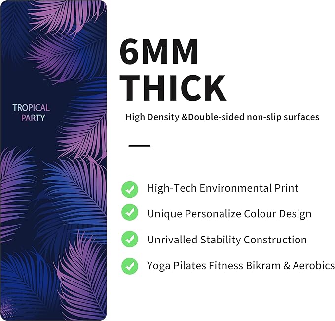 nuveti Yoga Mat Print Extra Thick TPE Non Slip Fitness Exercise Mat with Carrying Bag,72"x24" Extra Thick 6MM Exercise & Workout Mat for Yoga, Pilates Fitness and Floor Exercises