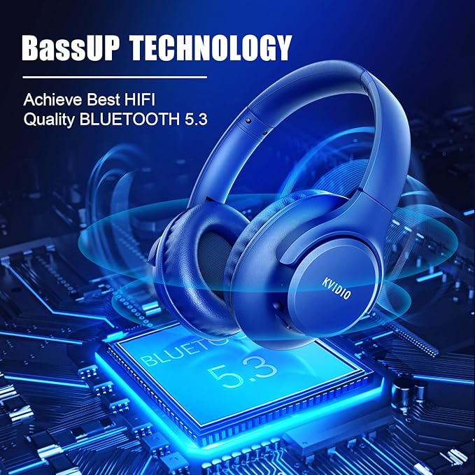 - High fidelity stereo headphones: KVIDIO upgraded bluetooth headphones with dual 40mm drivers and noise isolation technology, offers an almost concert hall-like feel to your favorite music as close as you're watching it live. Provide high-quality reproduction of sound for listeners, audiophiles, and home audio enthusiasts