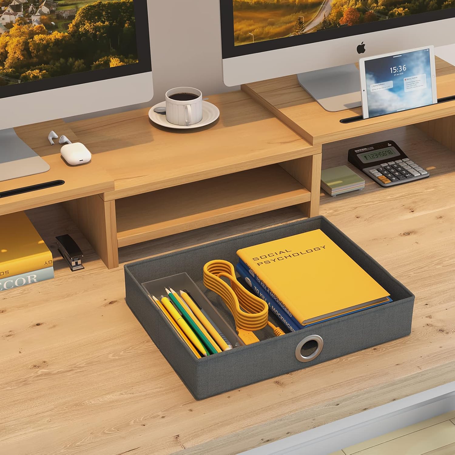 - 【Perfect Storage with Drawer 】Our computer monitor riser includes 13 inches practicality slide-out drawers, for storing items like post-it notes, writing utensils and mobile devices.