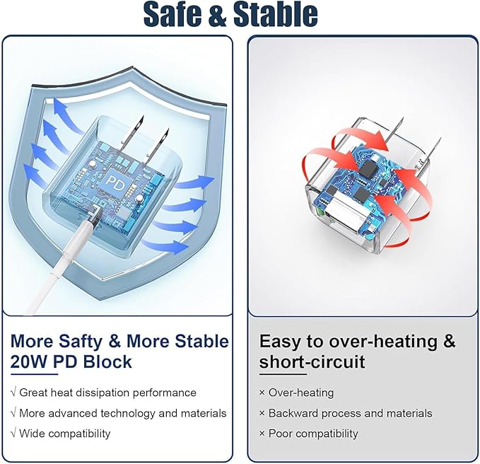 - 【Safety iPhone 16/15 charger fast charging】Our USB C iPhone 16 charger fast charging prioritizes safety with its comprehensive protection system, guarding against over-voltage, over-charge, and over-heating. Equipped with advanced smart chips, it intelligently adjusts the current to match your device's needs, guaranteeing a rapid and secure charging process for your iPhone 16/15/iPad Pro.