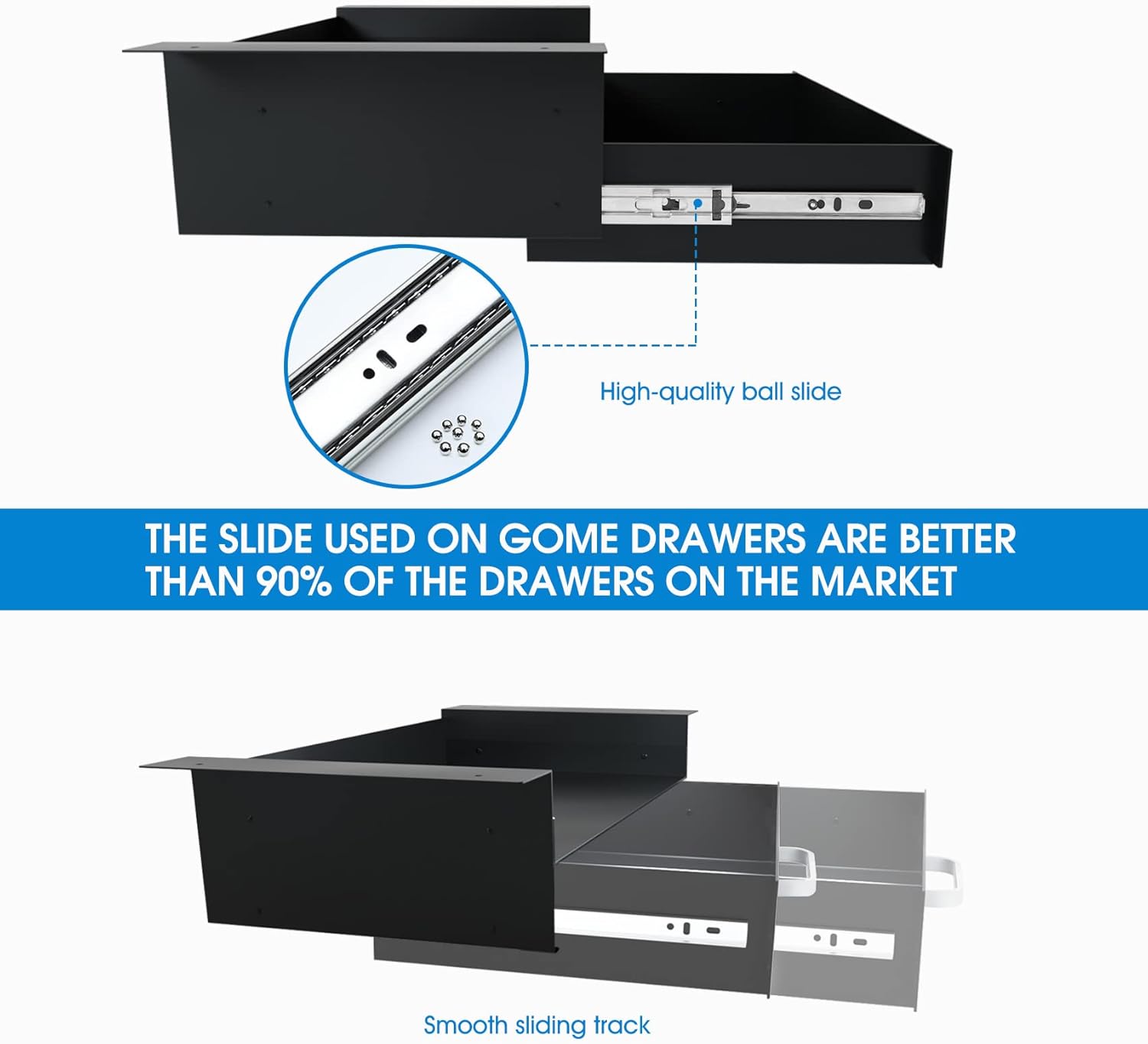 - 【Pulling is smoother】-- High-quality ball sliding track make the drawer pull smoothly. With three-section slide, the drawer can be completely pulled out,making it more convenient to take and place office supplies.