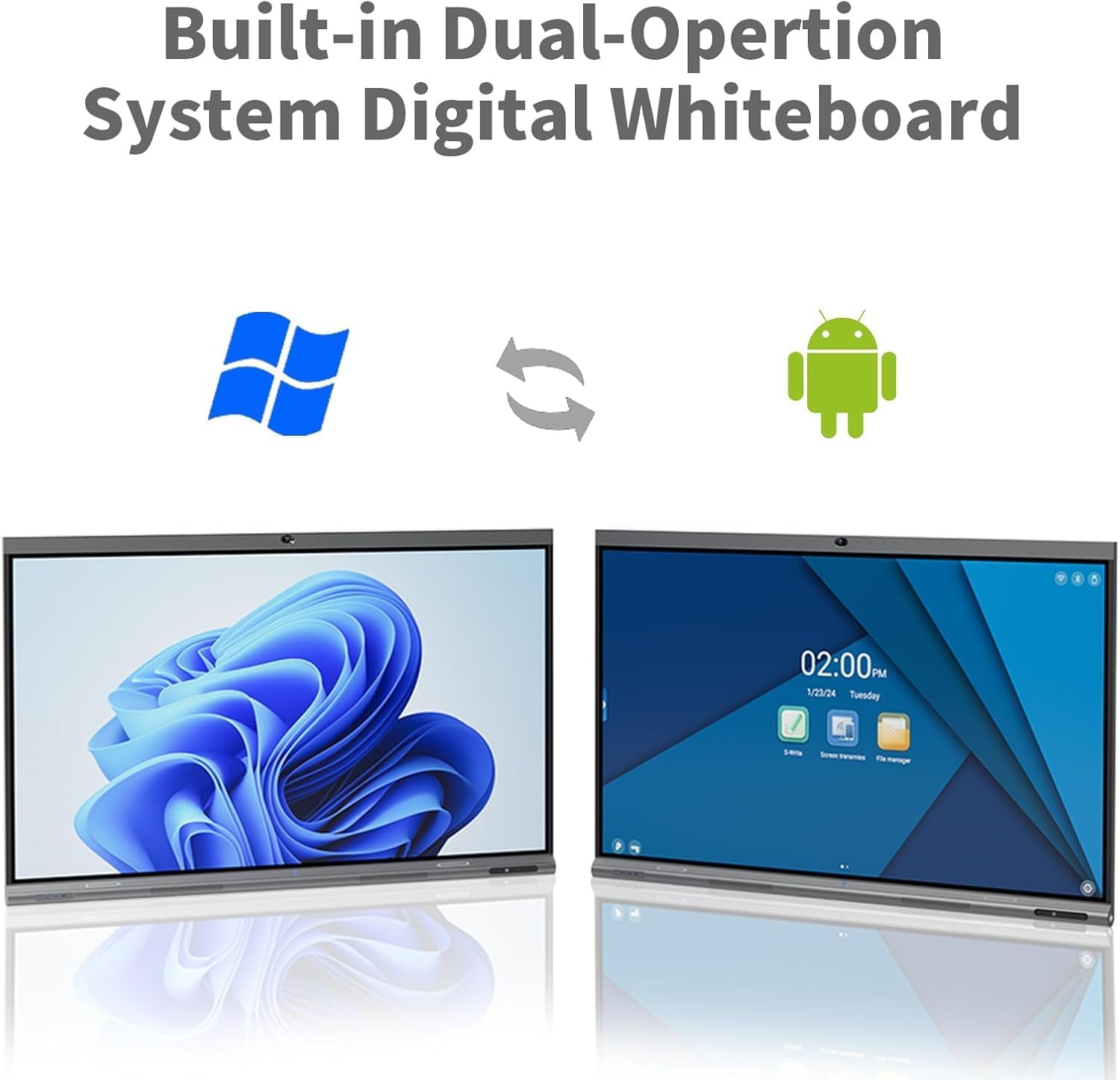 - 【Dual System Interactive Whiteboard】Smartboard with Mini PC with Intel I5-1250PE Processor and Android. It supports 2.4GHz+5GHz WiFi and provides up to 1000Mbps speed, dual WiFi provides easy transfer and download. Equipped with 16GB DDR4 RAM, 256GB SSD storage, and running Windows 11 Pro fully functional.