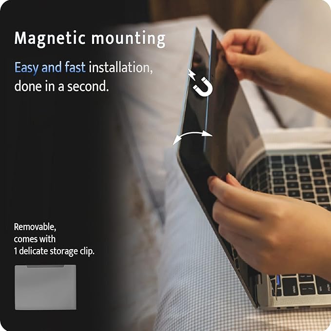 - 【WIDELY APPLICABLE】Removable design and comes with a macbook air privacy filter protector storage clip that can be taken and used as needed, perfect for various occasions where screen privacy needs to be protected.Like offices, airports, cafes, trains, etc. Compatible with MacBook pro 13 inch (Released in 2012,2013,2014,2015)