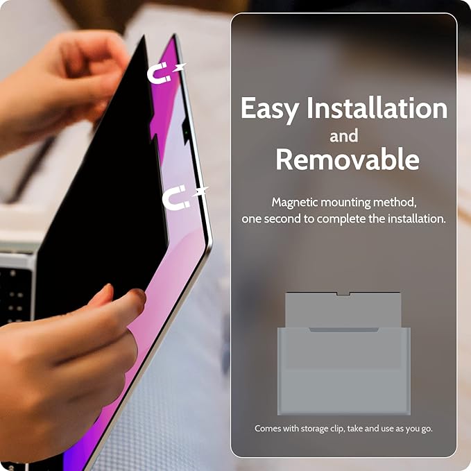 - 【WIDELY APPLICABLE】Removable design and comes with a macbook pro privacy filter protector storage clip that can be taken and used as needed, perfect for various occasions where screen privacy needs to be protected.Like offices, airports, cafes, trains, etc. Compatible with MacBook Pro 16 in (2021-2024, M4 Pro/M4 Max/M3 Pro//M3 Max/M2 Pro/M2 Max/M1 Pro/M1 Max Chip) - Model A3186 A3403 A2485 A2780 A2991