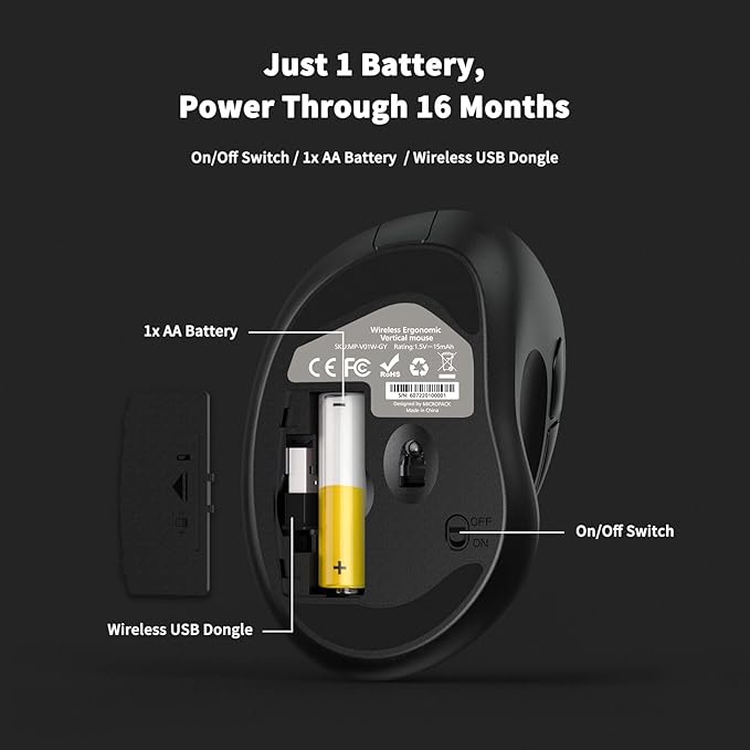 - Premium Long-Lasting Battery Life: Only one AA battery needed, it can work up to 16 months thanks to auto-sleep power saving mode and on/off switch button. Note: The battery life may vary based on use and computing conditions.