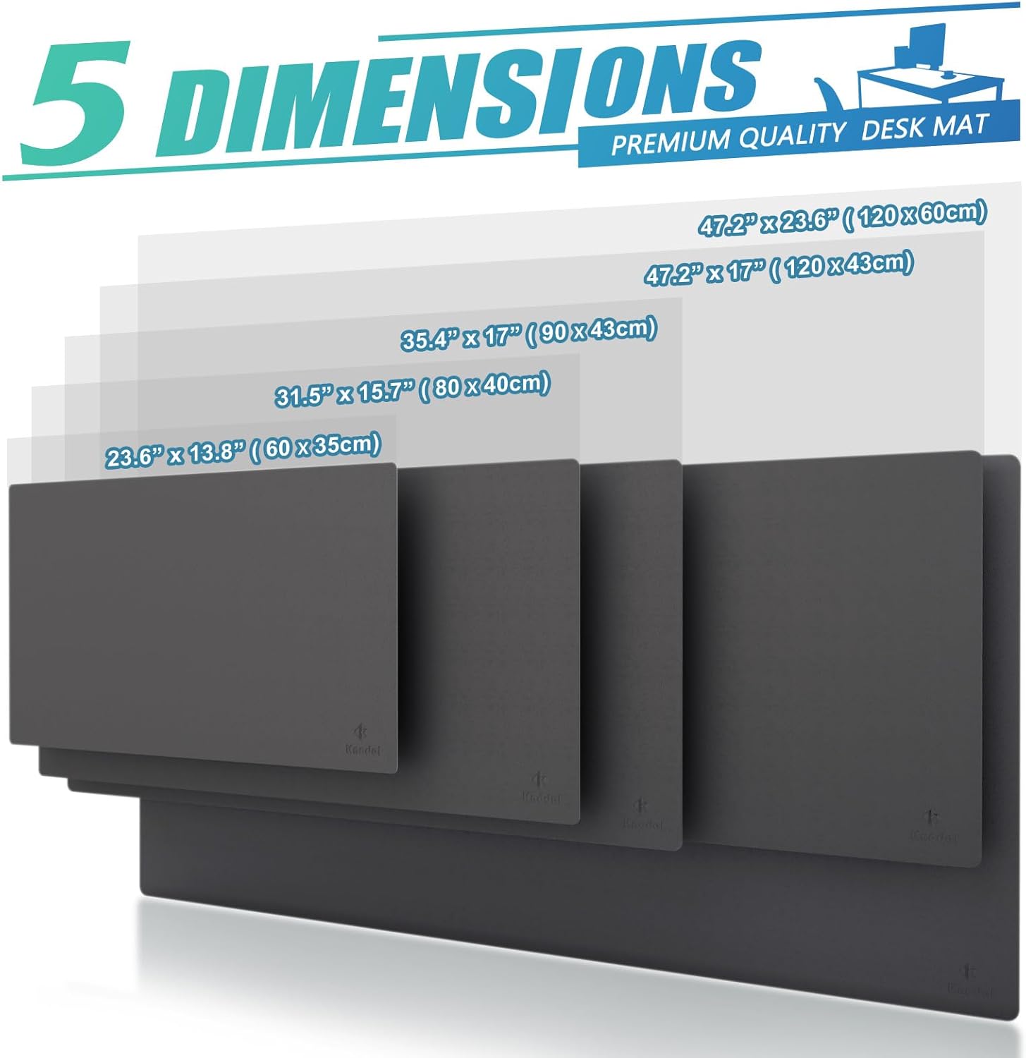 K KNODEL Small Office Leather Desk Mat, Mouse and Keyboard Pad, Computer and Laptop Mat, Desktop Protector and Cover, Writing Pad and Blotter (23.6"x13.8", Dark Gray)