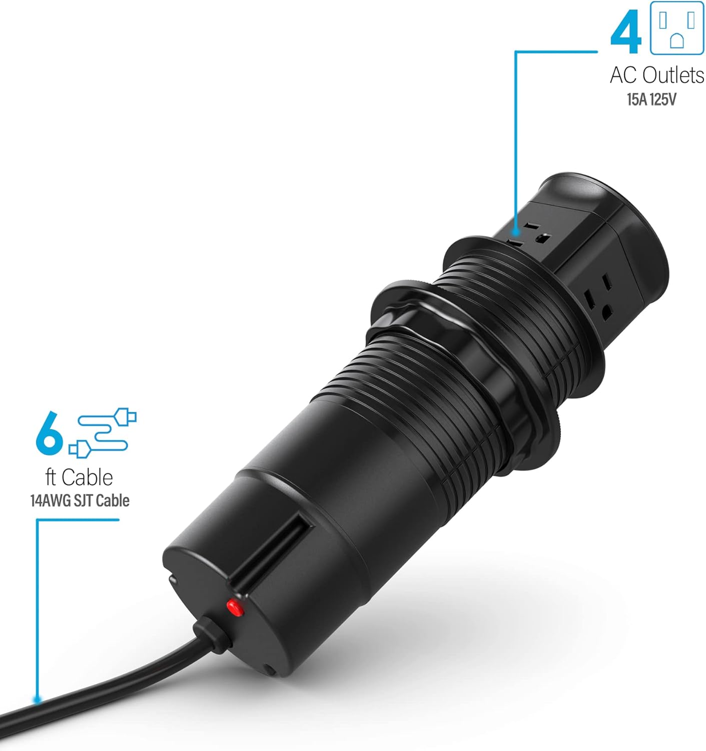 - Pop up Table Power Outlet:4 Grounded 3 Prong AC Outlet,provide more options when you need more than one plug.with 6ft Extension Cord.