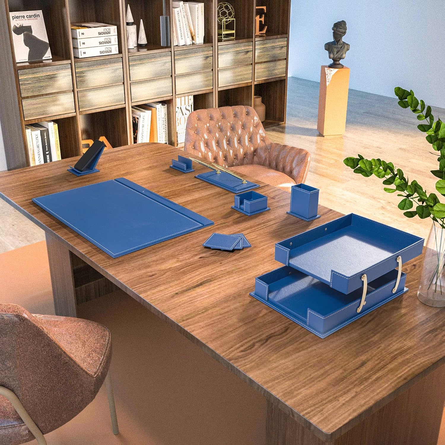 MOOGCO Bonded Set Luxury Leather Desk Pad & Desk Organization Essentials Desk Organizer Leather Desk Organizer