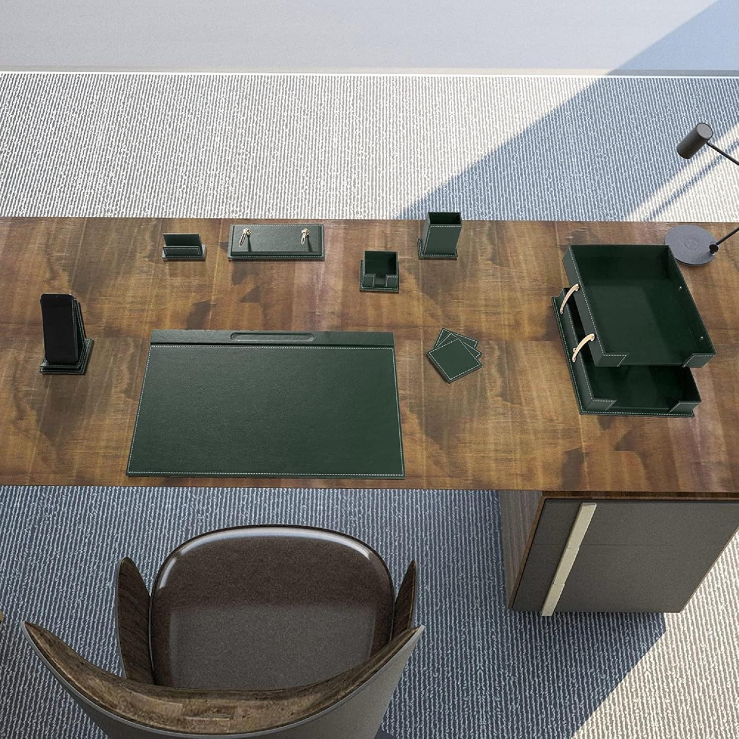 MOOGCO Bonded Set - Desk Accessories - Leather Desk Organizer - Bonded Leather Set - Office Desk Accessories - Home Office Accessories - Desk Supplies - Leather Desk Set - Office Accessories
