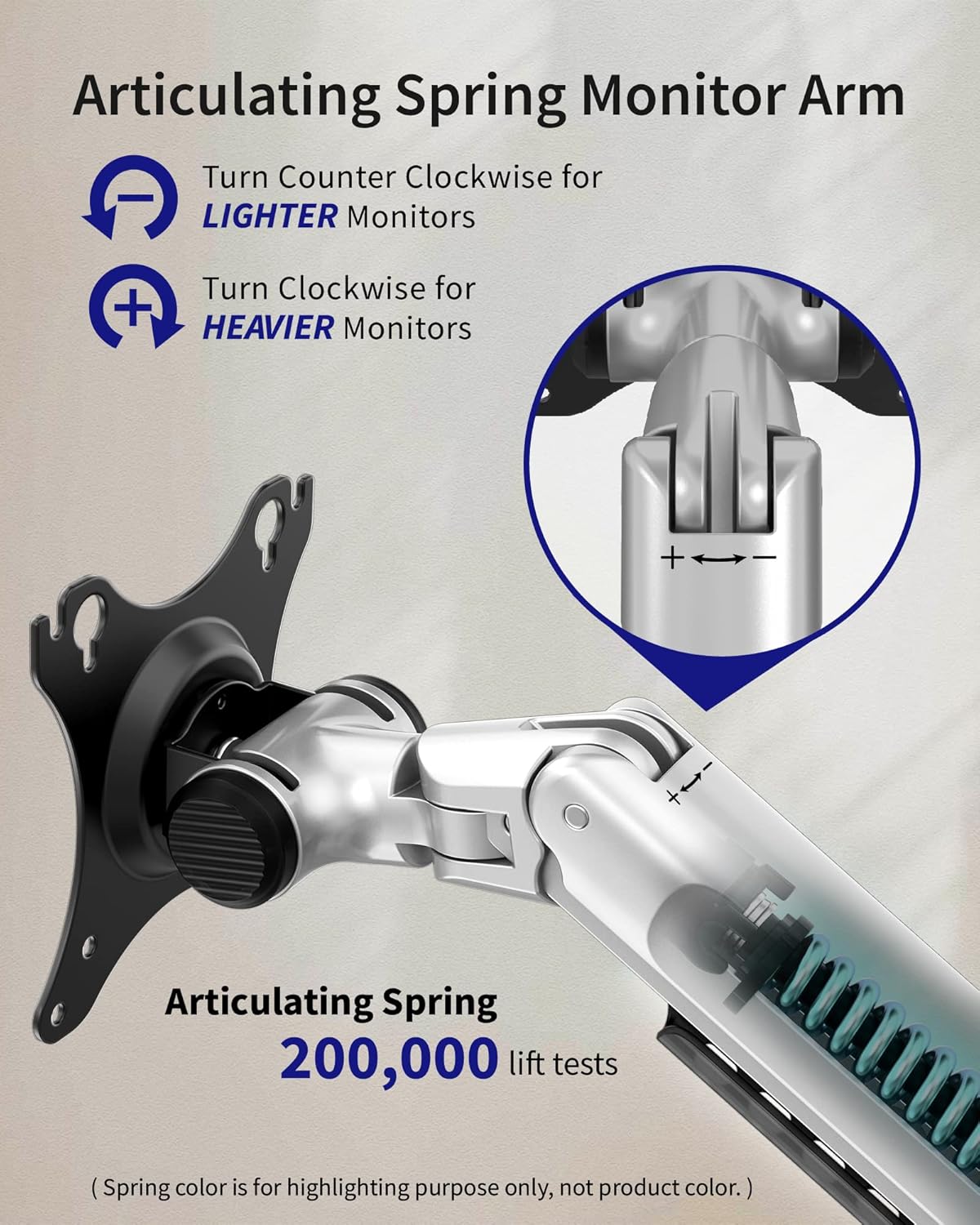 - 【Easy to Adjust】 E6 single monitor arm features a flexible movement structure, which enables instant and effortless adjustments for ideal viewing heights, more efficient than traditional monitor mounts.