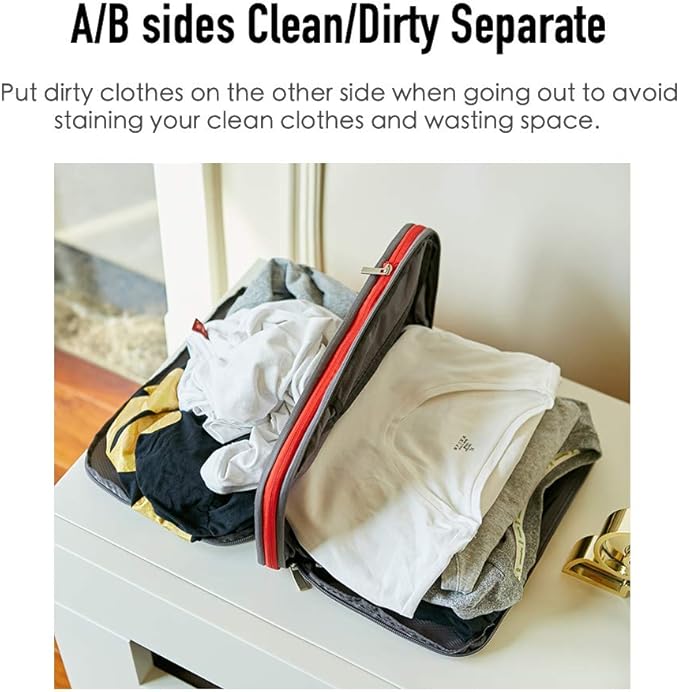 - 2 SIDED COMPARTMENTS - Every bags have double sides independent storage design, Can separate clean/wet. When clothes get dirty, just stuff 'em in the backside and you're good to go.
