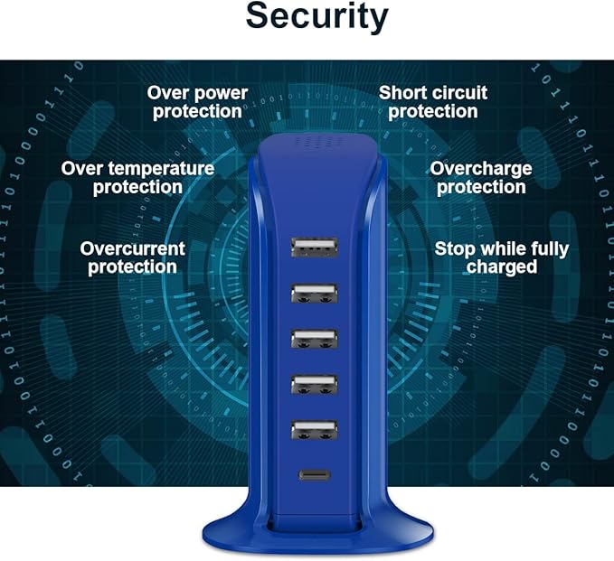 - 6 in 1 USB charger block with c port: Support 6 devices simultaneously, quick charger up to 2.4A for single USB port.