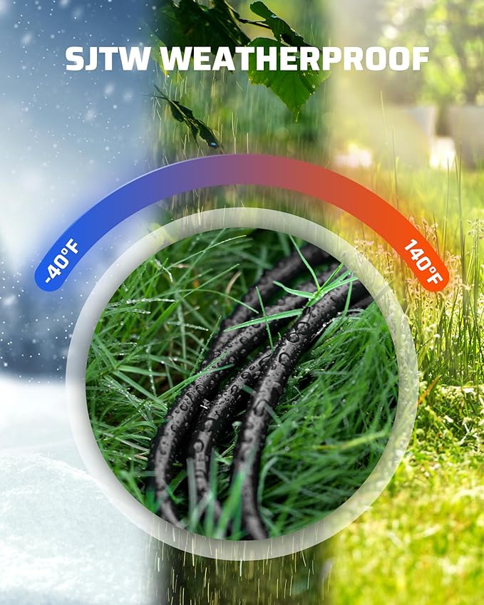 - 【Weatherproof Safety Covers】Each outlet plug comes with a safety cover which will protect against rain, snow and dust, support 3 grounded outlets extension cord being used in wet locations; fully satisfying your need outdoors or in the garden