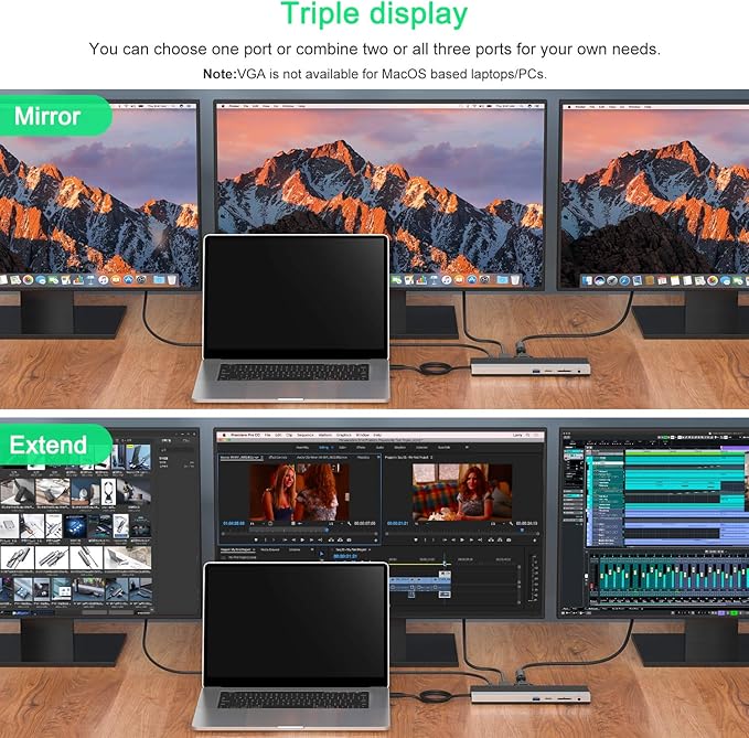 - 4K HDMI & Triple Display -Three different display interfaces meet different needs. Mirror or extend your screen with HDMI, DP port and directly stream 60Hz for 4K ultra-high-definition video to a high-definition TV, monitor, or projector for a visual feast like a movie. A single HDMI/DP can support up to 4K at 60Hz under DP1.3 source. The resolution will be 2K@60Hz if two monitors are playing at the same time, then 1920x1080@60Hz when using 3 display mode