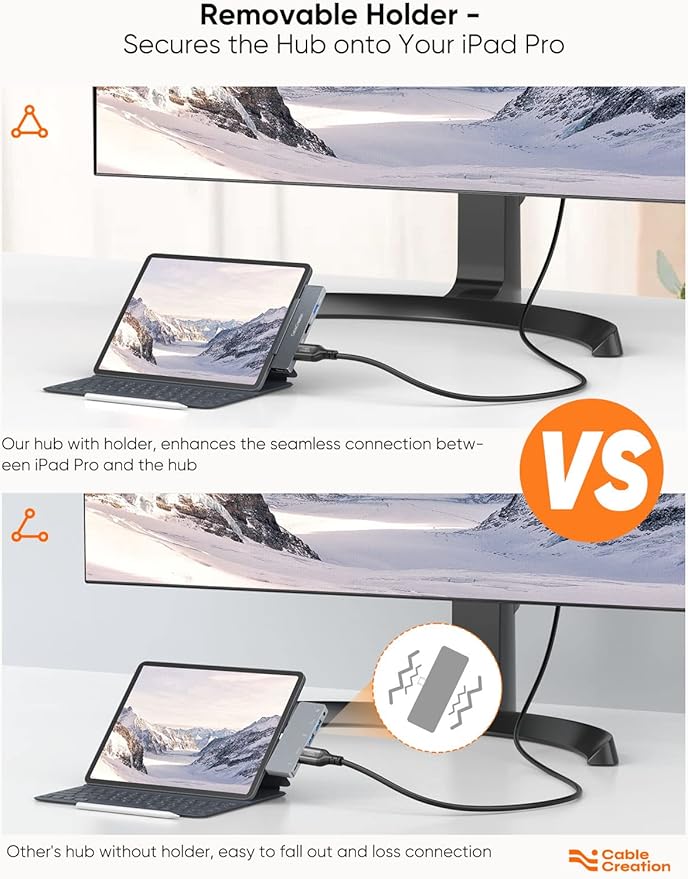 - What You Get :1×CableCreation 5-in-1 iPad Pro Hub,1×movable bracket, 24 months worry-free warranty and lifetime technical support