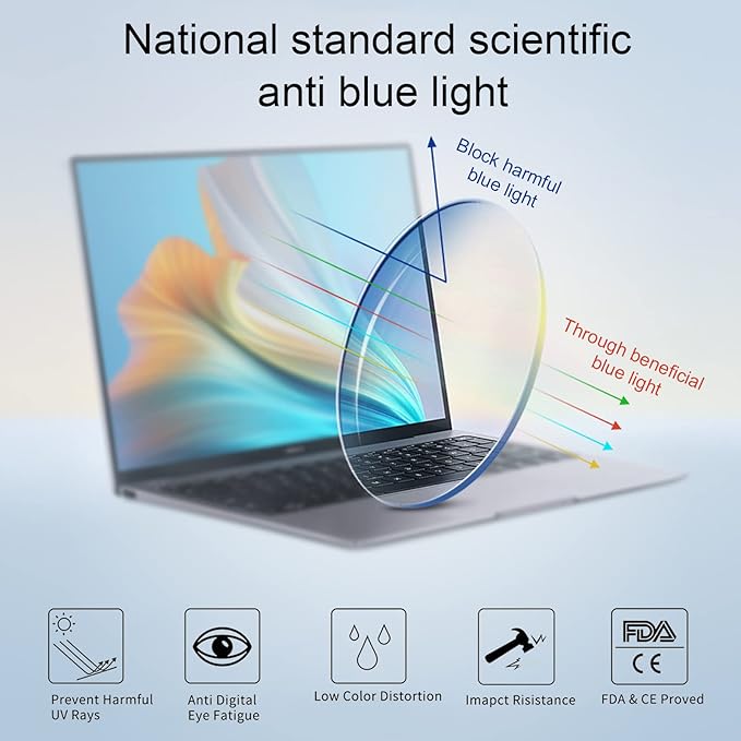 - Anti Blue Light Reading Glasses-Blue Light Lens can Block and Filter Harmful Blue Ray,Effectively Reduce Eye Strain and Migraine Coming From Smart Screens (computer,cellphone,TV and etc.)when Gaming and Working.