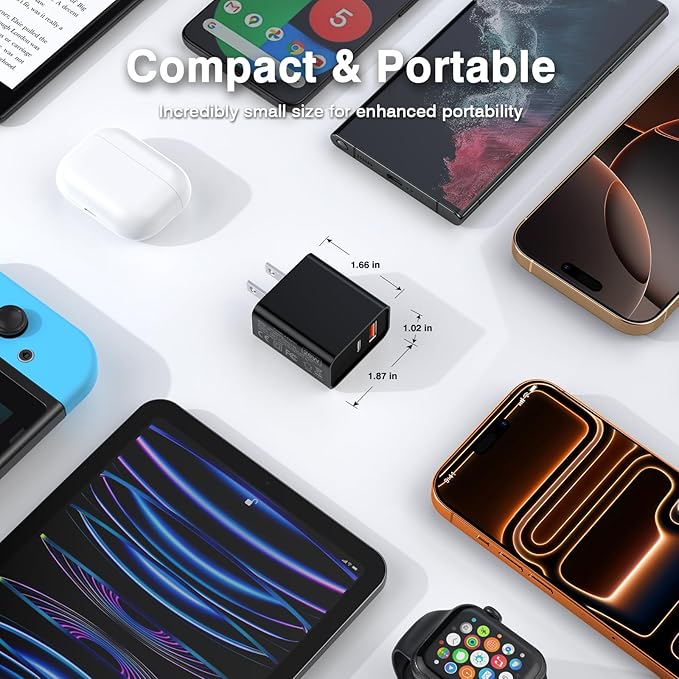 - Universal Compatation: Designed for iPhone 11/12/13/14/15/16/17/Pro/Pro Max/Plus/iPhone 8 and later. The USB charging adapter is compatible for iPhone, iPad, iPod, smartphone, MP3 / MP4 players, play equipment, GPS devices, PC tablet, Google Nexus Tablet, Samsung Galaxy Tab and other digital devices compatible