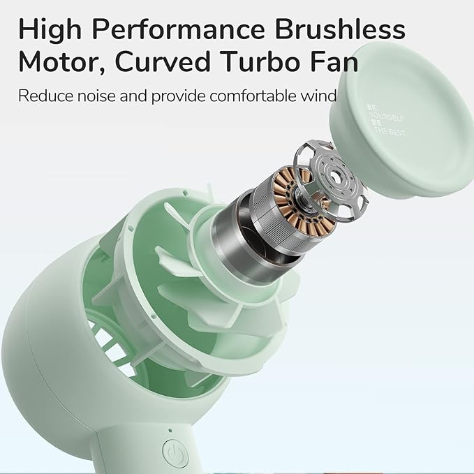 - Upgraded Turbo Engine: Aircraft engine turbine technology to provide super power. The air volume of the handheld fan is 30% higher than that of ordinary fans. The speed is as high as 7500r/min. The 7 wedge-shaped fan blades absorb wind force, and the wind force is increased by 3 times through the air duct