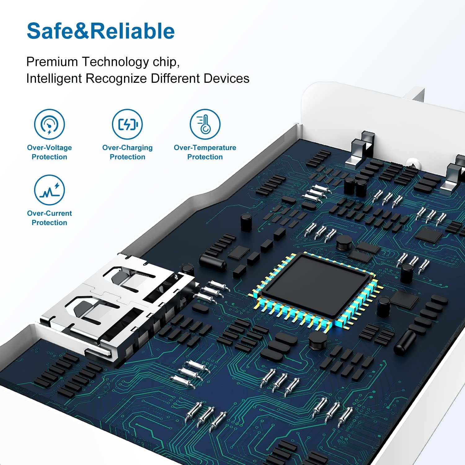 - ăSafeguard ProtectionăUSB c Android chargers comes with premium built-in safeguards and intelligent IC identification technology to prevent against short circuit, over-current, over-voltage, over-heating and over-charging. It can intelligently recognize the battery type and status, will automatically stop charging when fully charged for a safety charging and long lifespan.