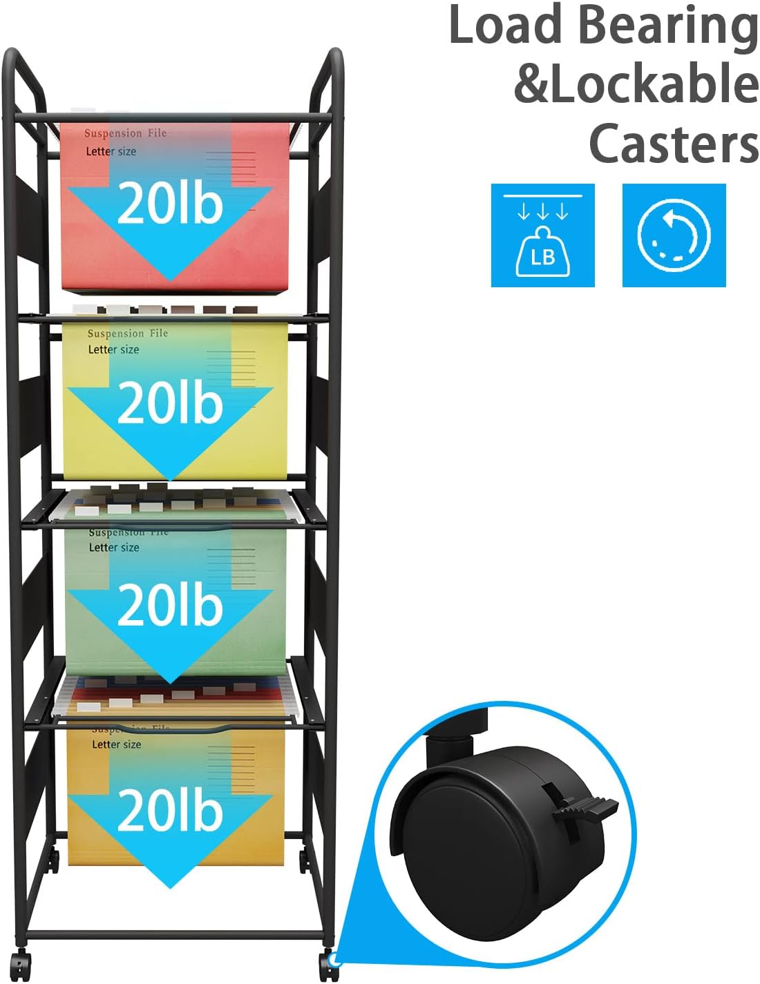 - 【Quality Metal Material】The movable file hanger cart is made of high quality metal material. Each steel pipe is 0.8mm thick and can bear 20lb pressure each tier.