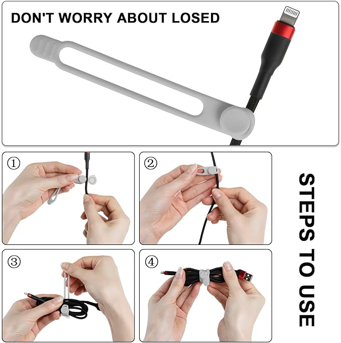 - 【Right Size & Adjustable】 This cable tie with 4.2-Inch length is unexpectedly suitable for earphone cable, data cable, mouse cable, audio cable, network cable and more. The size and the weight are small and light enough to carry away without any burden