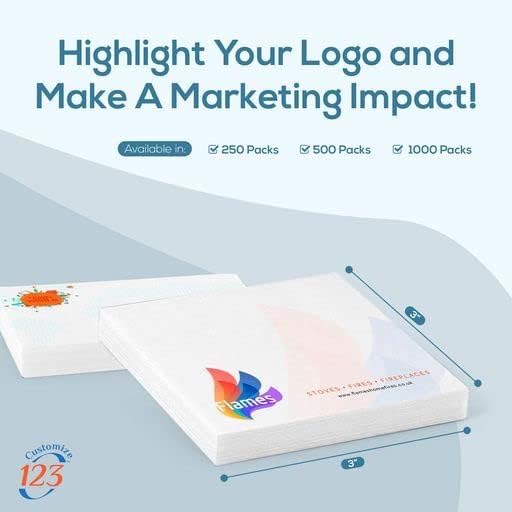Personalized Sticky Notes with Text or Logo, 3"x3" Custom Office Pads, 25 Sheets Customized Memo Pads for Office, Home and School, Notepad Gifts Useful for Teacher and staff, Student Supplies, 500 Qty