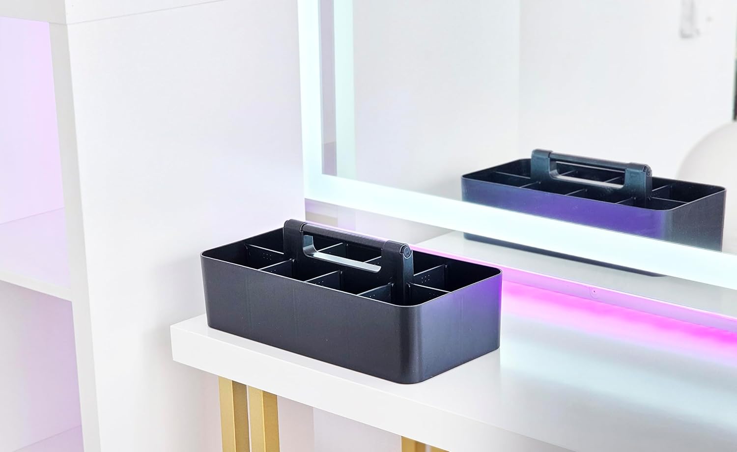8 Compartments DIY Dividers,Large Portable Caddy, Multi Purpose,Stackable, Modern Solution for School, office, Desktop Endless use of your Choice -MADE IN USA (Black)