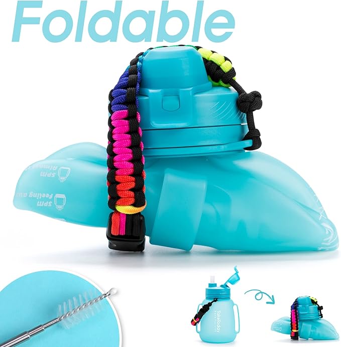 - Collapsible water bottles can save more space: Our 40 OZ gallon collapsible water bottles can be folded to save up to 68.5% space. The motivational water bottle can be easily packed in your bags or packages and convenient to take with everywhere you go. The giant silicone jug water bottle is rolled up and fixed with a braided paracord bottle handle, portable accessory for you on the go. Quite easy to carry and hang up with the water bottle handle.