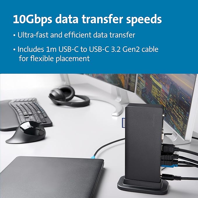 - 1M USB-C 3.2 Gen-2 cable (included) connects the dock to your device; 135W power provides 100W laptop charging to laptops that accept Power Delivery, plus power for peripherals