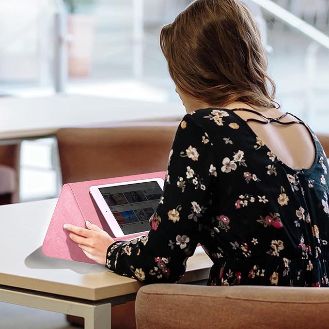 Soft Tablet Stand Pillow with Pocket,Adjustable 3 Viewing Angle,Lazy Holder for Bed Sofa,Compatible with iPads Tablets eReaders Smartphones Books Magazines (Light Pink)