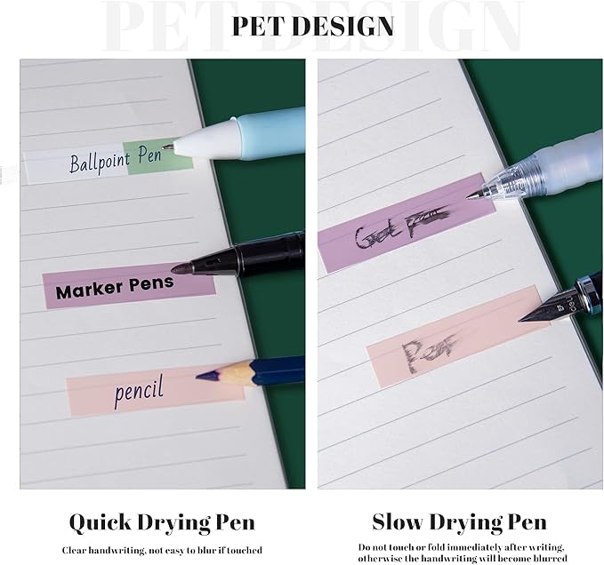 - [WRITABLE AND POSITIONABLE] The label is half self-adhesive, and can be repositioned for easy pasting and marking, and clean up. Different pens bring different effects to the sticky notes, (easy-dry pens: ballpoint pens, pencils, markers; difficult-to-dry pens: fountain pens, gel pens, ink-based pens, etc).