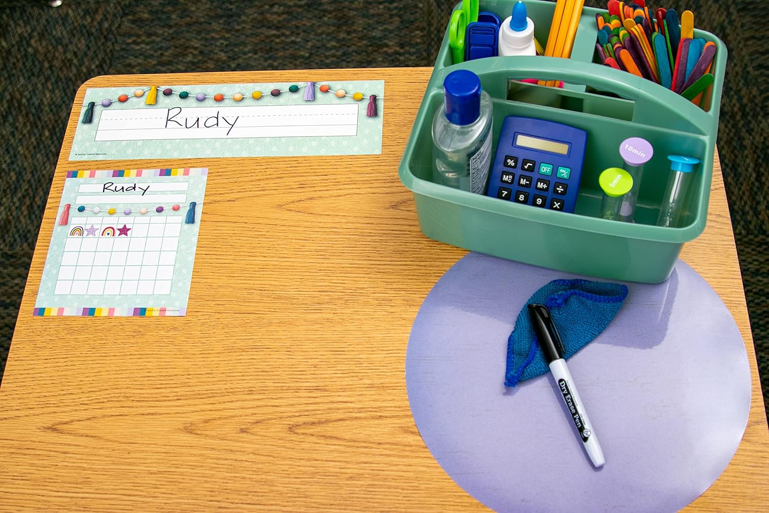 Teacher Created Resources Eucalyptus Green Portable Plastic Storage Caddy 6-Pack for Classrooms, Kids Room, and Office Organization, 3 Compartments