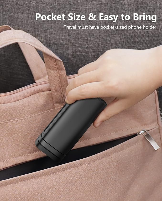 - A Practical and Versatile Gadget: This handy phone stand offers endless possibilities. It can securely hold your phone in various orientations – vertical or horizontal. You can attach it to a luggage handle, tray table, desktop, chair, shelf, bed, book, power bank, or even use it as a short selfie stick.