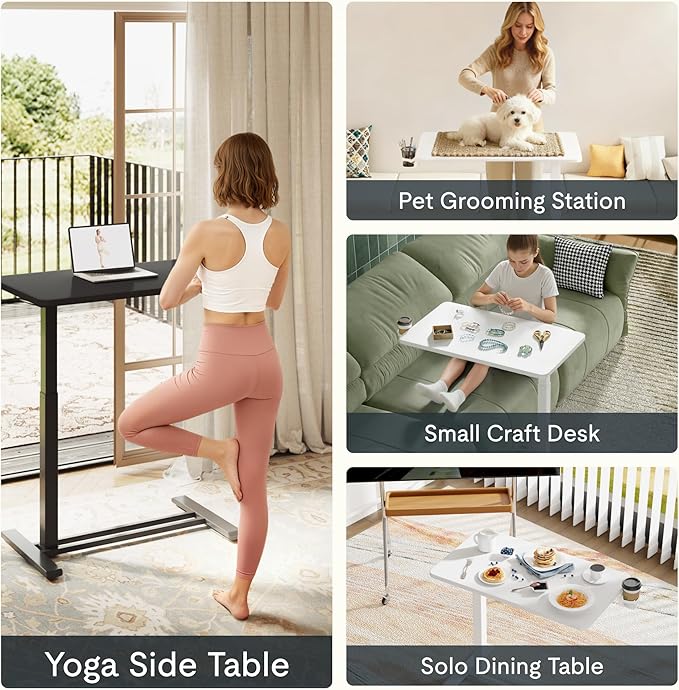 - Easy to move around & space-saving: Flexispot standing desk overbed table is equipped with 4 hidden casters to easily maneuver it anywhere you like. It’s an ideal portable workstation for any home or office! A low-profile base with smooth rolling wheels eases and tuck beneath furniture minimum 1.2" high to save space.