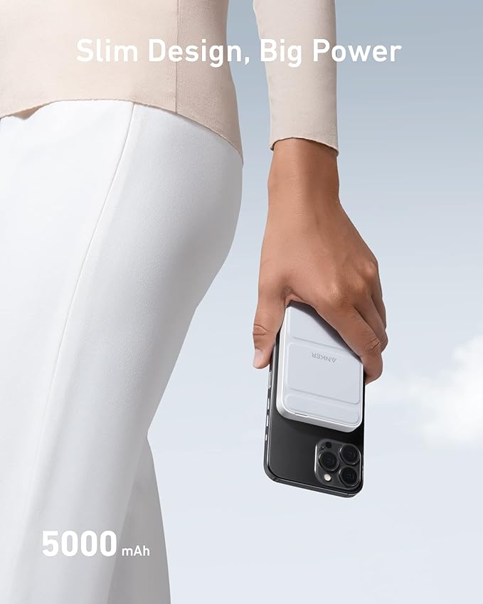 - Elegance in Your Palm: The Ultra-Slim Design at just 0.5 inch thin enhances portability and handling, making it a sleek companion for your iPhone 16/15 as a Magsafe battery pack that easily slips into your pocket or purse, doubling as a portable charger.