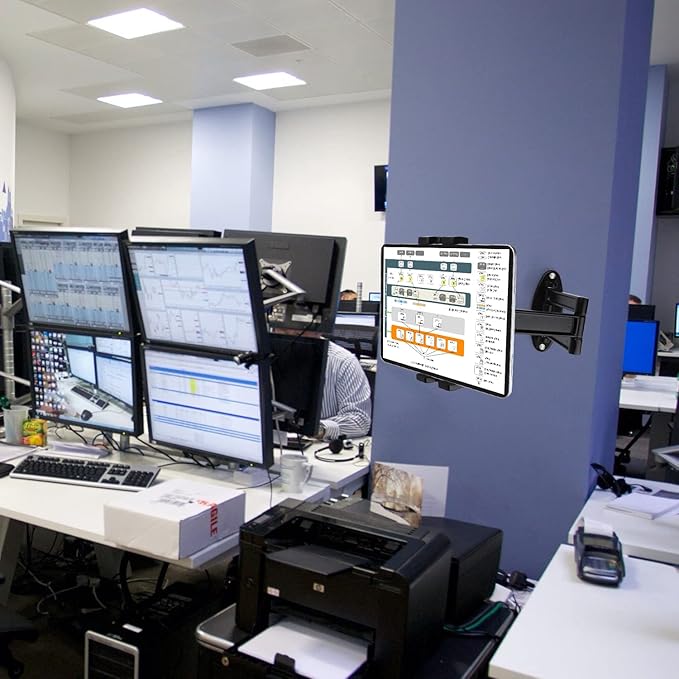 - 【Mount Anywhere】: Heavy-duty aluminum alloy material arm with tablet is suitable for these places: classroom,conference room, warehouse,healthcare facilities,kitchen,office, restaurant,supermarket,gyms,food shop and kiosk etc, the friendly mount arm and clamp are convenience for you.