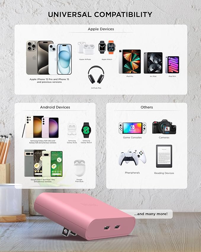 - SLEEK DESIGN: Admire the sleek design of our USBC charger block, a boon for those dealing with limited space or hard-to-reach outlets. The USC charger block's flat design allows for easy access, enabling you to effortlessly plug in your devices, even in tight spaces.