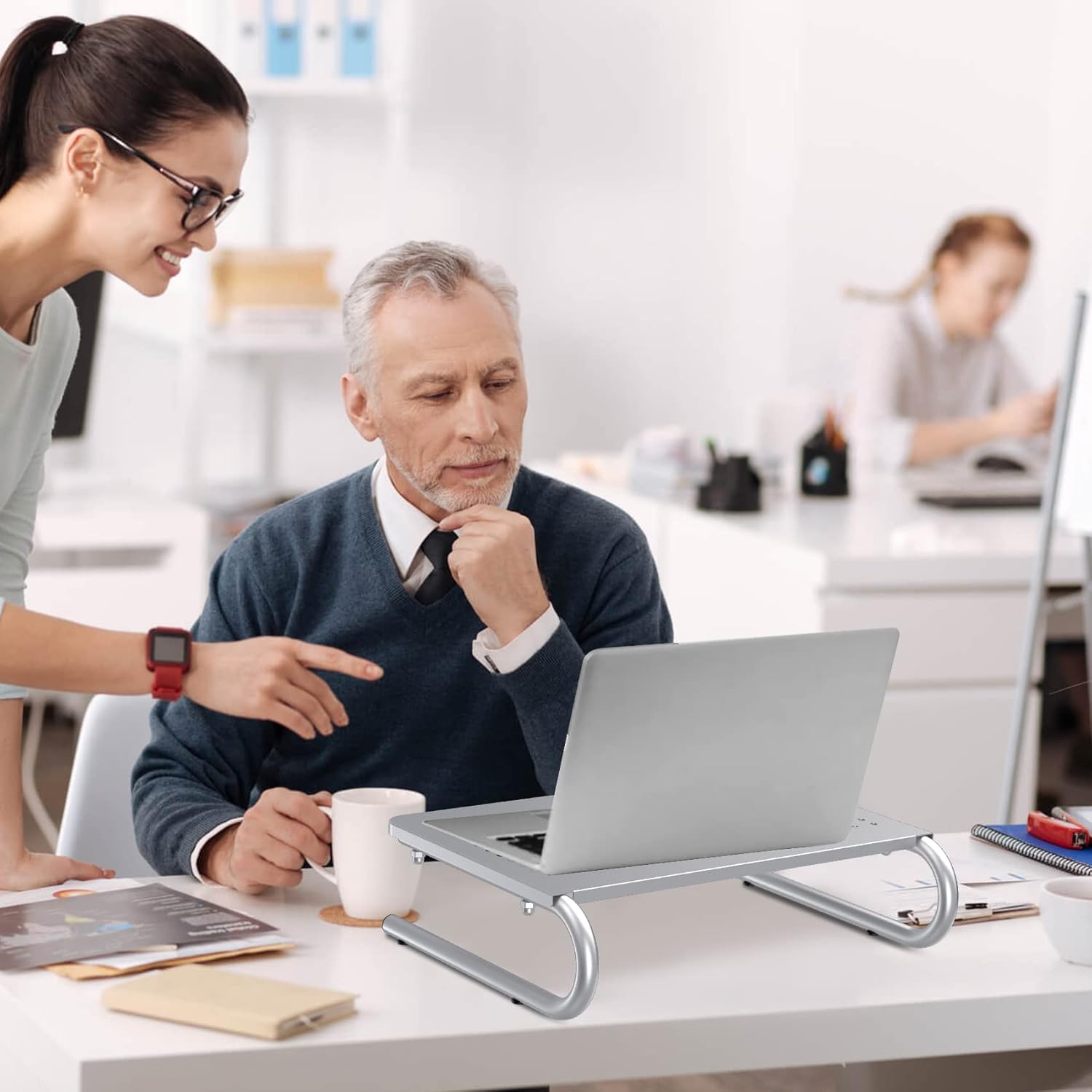 - Ventilated: The large sturdy platform with vented holes, this laptop stand riser will prevent overheating and keep the device run in cool.