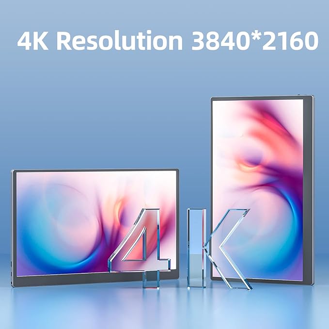 - Upgraded Accessories: The package includes: 1×Upperizon 15.6” 4K Portable Monitor, 2×USB-C to USB-C display cables, 1×HDMI to mini HDMI cable, 1×Power Adapter