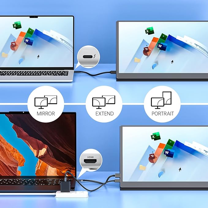 - Lightweight & Portable: This portable display is 1.5 lb weight and 0.3 inch thin. Perfect for business travel, office working, gaming, watching videos, sharing screen with others. Portable external monitor can work in both landscape and portrait mode, boosting work productivity