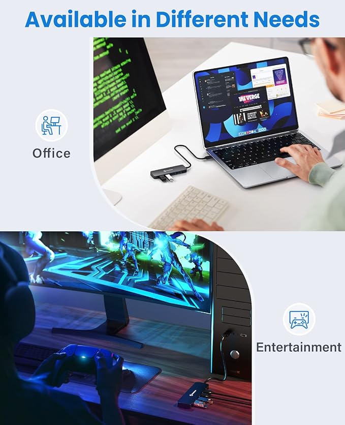 - 【Borderless to Use】This USB splitter for laptop is compatible for Windows, and macOS systems. It works with PC, MacBook, iMac, PS4, Switches, Flash Drives, Keyboard, Mouse & any other USB compatible devices, backward support with USB 1.0, USB 1.1 and USB 2.0 devices.