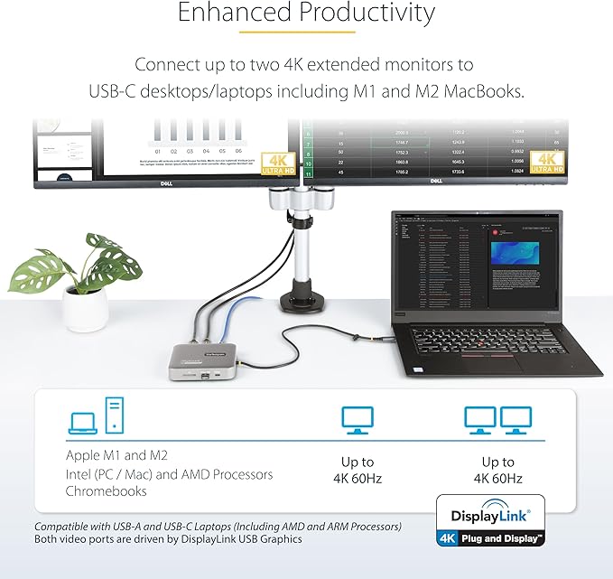 - WORKS WITH ANY LAPTOP: Simplify your deployment with a USB-IF and VESA-compliant, DisplayLink-certified docking station that delivers optimal performance and universal compatibility with any laptop (Windows, macOS, and Ubuntu) or Chromebook (ChromeOS)