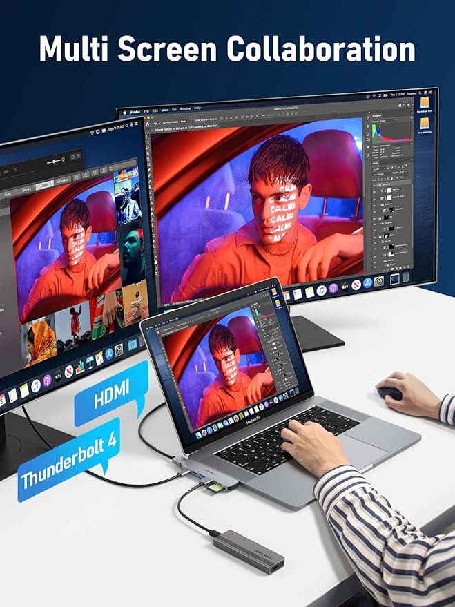 - [Fast Charging Thunderbolt Port and Data Transfer]: Macbook Pro Thunderbolt 3/4 hub adapter max up to 100W during charging; Supports video viewing up to 4K at 60Hz; Data transfer at speeds up to 40Gb/s, which is twice as fast as Thunderbolt 2 port.